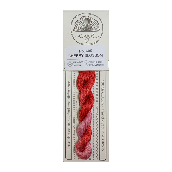 This listing is for 1 skein (10m) of Cottage Garden Threads 100% cotton 6 stranded thread in colour 605 Cherry Blossom. Beautiful Cottage garden variegated threads are designed for surface work, embroidery and stitchery projects. These threads are fabulous quality and wonderful to stitch with.