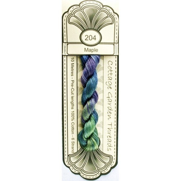 Cottage Garden Threads are hand-dyed in Australia by Pam Spurway. Her variegated palette is inspired by the natural beauty of the rural landscape of Australia. The variegation is designed with a short colour length of 2 to 3 inches especially for embroidery to enable a good variation of colour in smaller lengths of stitching.
