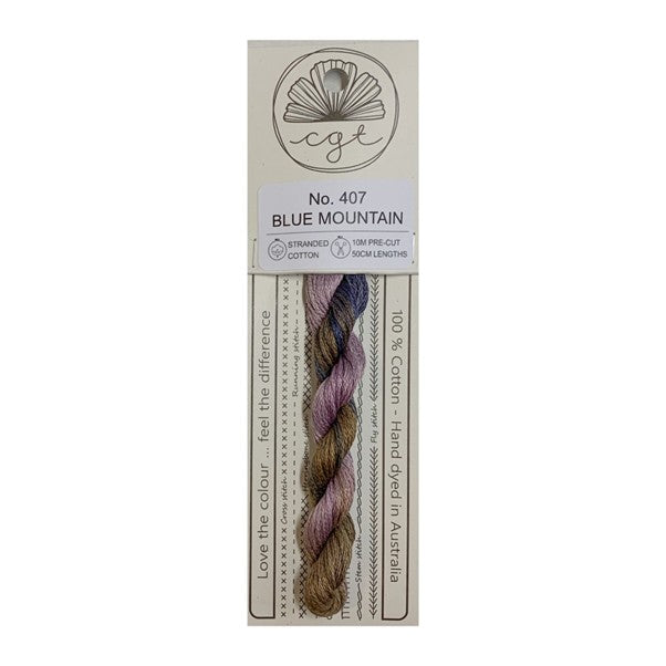 Cottage Garden Threads are hand-dyed in Australia by Pam Spurway. Her variegated palette is inspired by the natural beauty of the rural landscape of Australia. The variegation is designed with a short colour length of 2 to 3 inches especially for embroidery to enable a good variation of colour in smaller lengths of stitching.